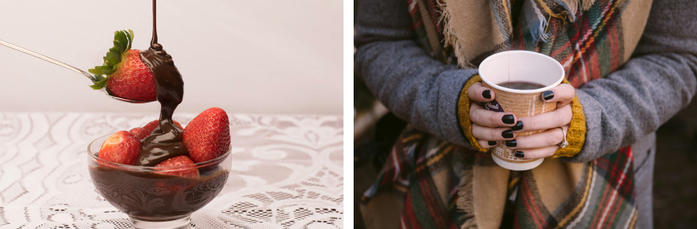 練乳はもちろん、甘いチョコレートソースをいちごにつけて楽しむ、最高の組み合わせをお楽しみいただけます。