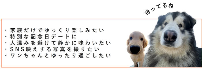 ・ワンちゃん(10kg未満)同伴OK(※別途500円を現地にてお支払いいただきます)