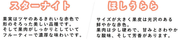 • 「もっと美味しさを追求したい!」そんな想いで、話題の「深紅の美鈴」を筆頭に3つの希少品種を植えました。