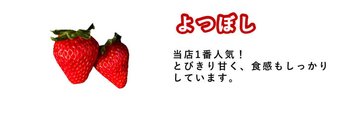 • 大好評!人気の「よつぼし」や「紅ほっぺ」を思う存分お楽しみいただけます。