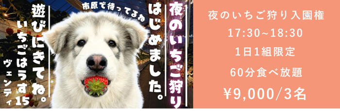 • ¥9,000 夜のいちご狩り入園権 3名さま