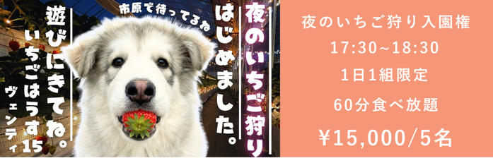• ¥15,000 夜のいちご狩り入園権 5名さま