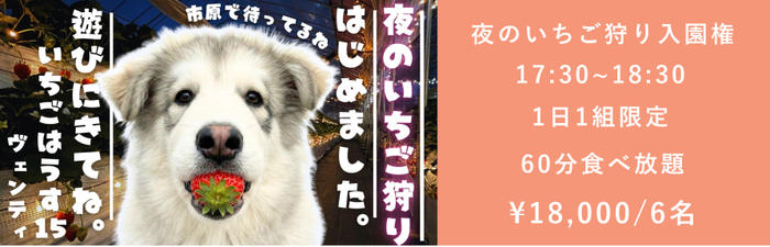 • ¥18,000 夜のいちご狩り入園権 6名さま
