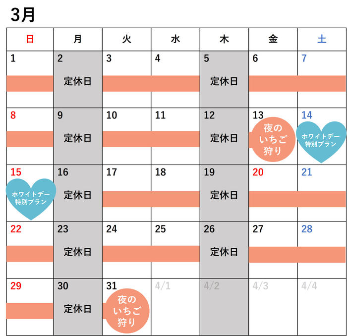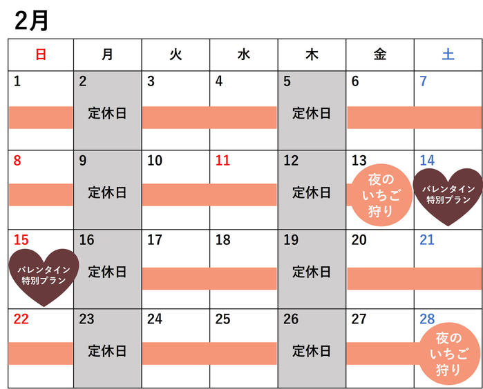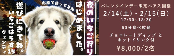 • ※2月14日(土)~15日(日)、3月14日(土)~15日(日)は通常の「夜のいちご狩り」はご予約できませんのでご了承ください。