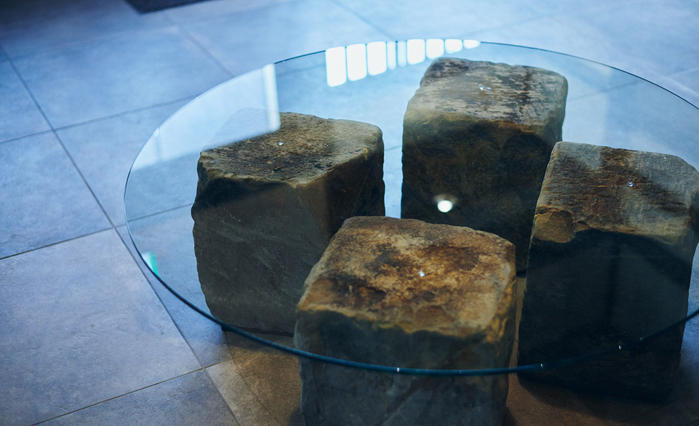 永い年月を経て味わい深さを増した梁や柱、細かな職人技が美しい欄間や長押飾りなどの旧き佳き意匠と、酒造りで使われていた古材を再利用した客席テーブルや、作家によるランプシェードなど、現代のデザインが調和する空間も、見どころの一つです。 -