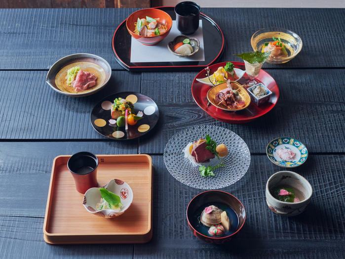 - 酒宴・日本酒とワインの饗宴では、二十四節気の「啓蟄(けいちつ)」に合わせた全6品のお食事を特別メニューとして提供します。