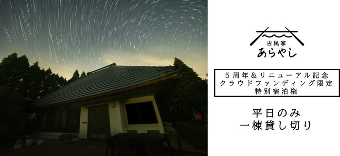 「古民家あらやし」をさらに楽しんでいただくため、特別なオプションをご用意しました。今回のクラウドファンディングの支援者さまのために用意したオプションとなりますので、宿泊とあわせてご利用ください。