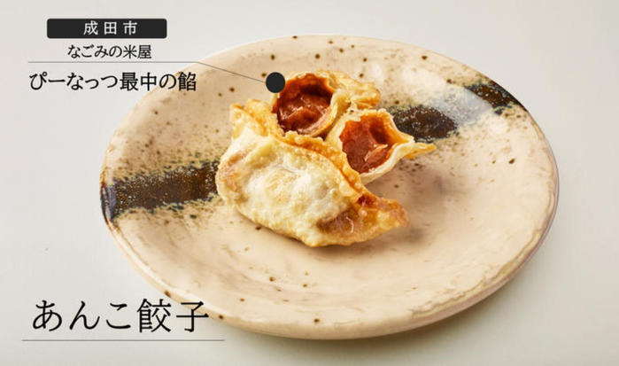 千葉県のお土産として大人気の「ぴーなっつ最中」を製造・販売する「なごみの米屋」とコラボし、なごみの米屋の「ぴーなっつ最中の餡」がぎっしり詰まった揚げ餃子「あんこ餃子」を販売します。 -