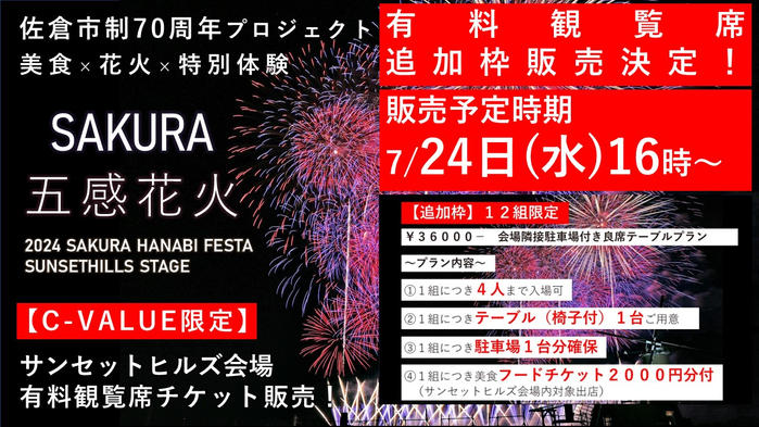 - 完売御礼の佐倉花火フェスタ、サンセットヒルズ会場の有料席につきまして、