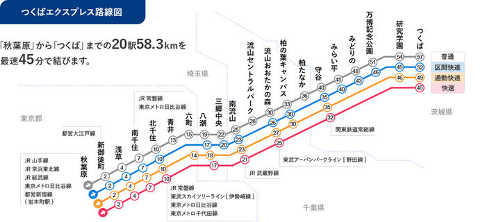運行区間:つくばエクスプレス 秋葉原駅~つくば駅間