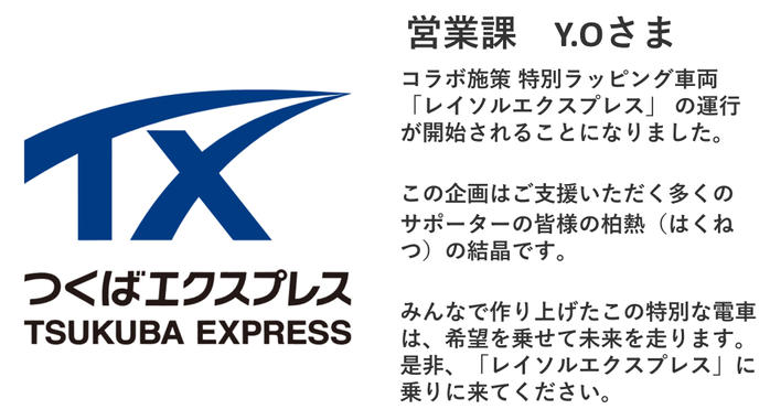普段、通勤や通学でつくばエクスプレスを利用されるお客様に、レイソルの熱戦がすぐ近くで繰り広げられていることに気付いていただける取り組みになればと考えています。