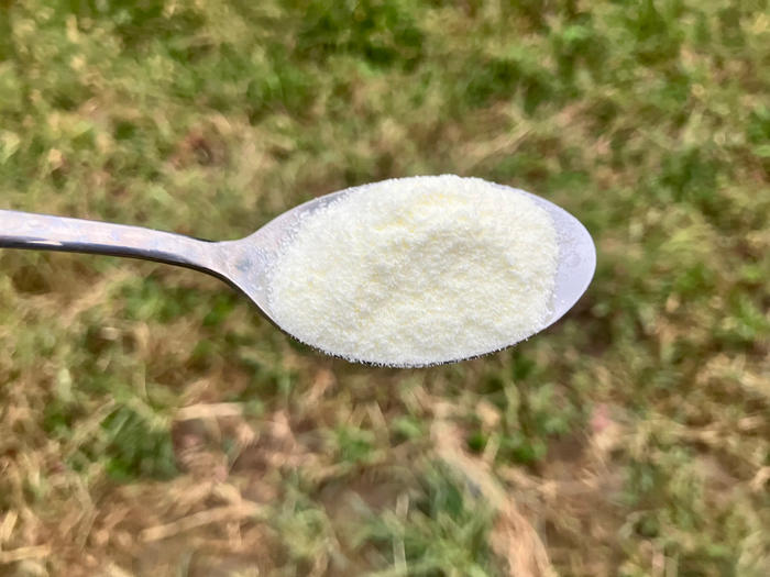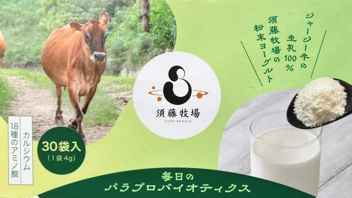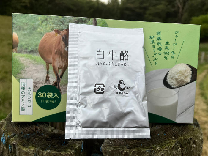 - 須藤牧場の放牧場で育ったジャージー牛の生乳100%使用のヨーグルトをフリーズドライで粉末にしました。