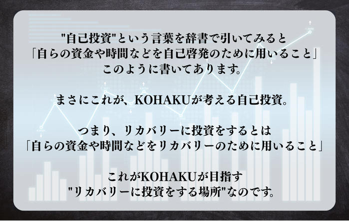 • KOHAKUは"リカバリーに投資をする場所"としての価値を皆さんに提供したいと思っています。