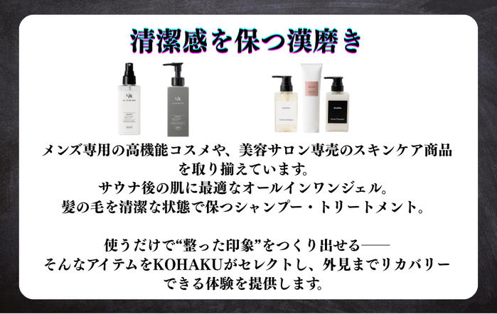KOHAKUは、日々忙しく過ごす皆さんに、少しでも“外見”を整える時間を持ってほしい。